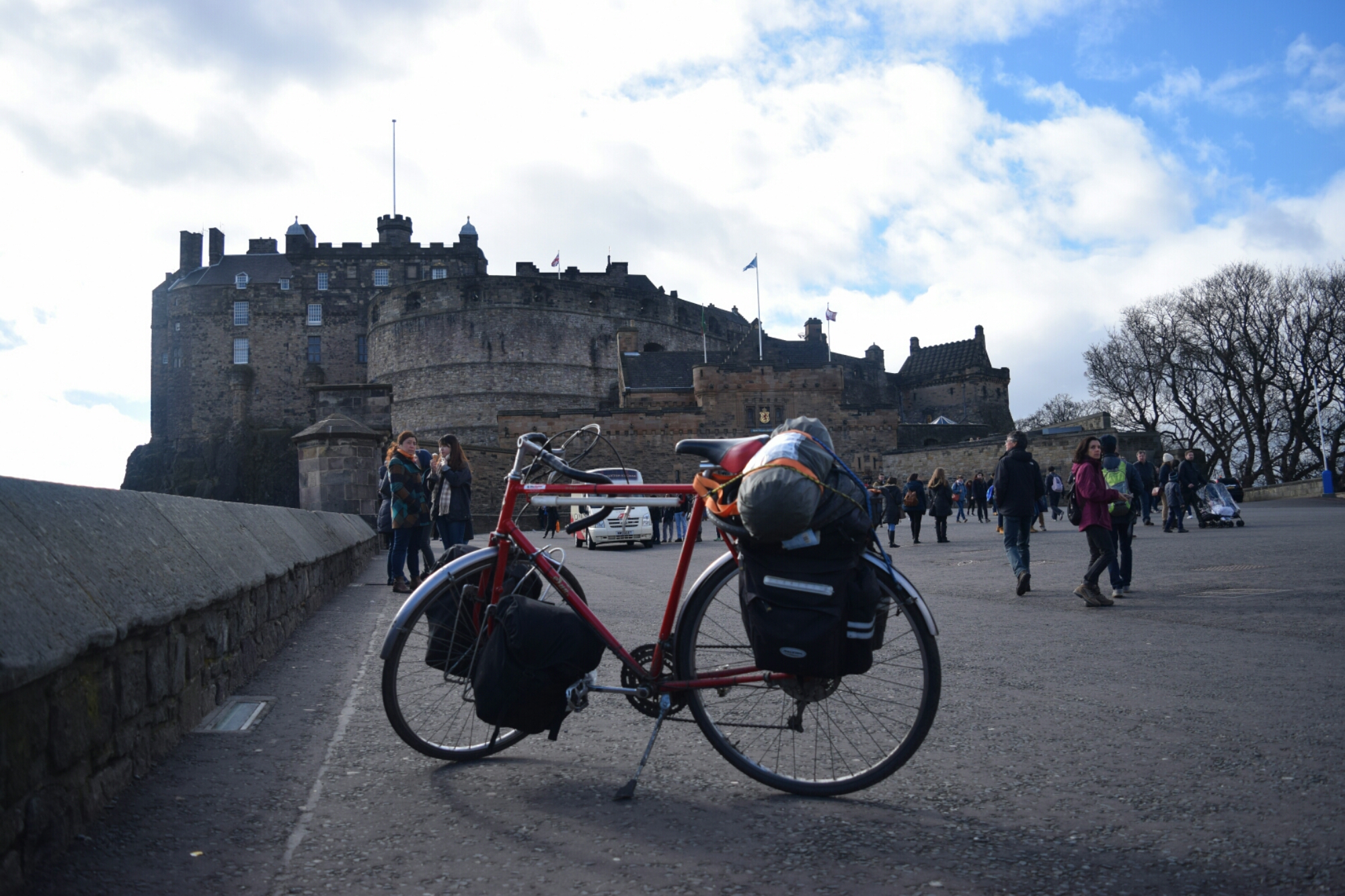 Fast forward 2 weeks, and I managed to make it to the top of Scotland! I cycled through Manchester, Lancaster, Lake district, Dumfries, Glasgow, Edinburgh, Perth, Inverness and right up to the top in John O Groats. It took 12 days from Lincoln which was a bit faster than I expected to travel, but I had the need for speed! I did some couch surfing along the way and met some very friendly and hospitable people along the journey. I want to say a huge thank you to all of you although you may never read this. Scotland was an incredibly beautiful country and reminded me constantly of being back home in New Zealand. So many of the streets were lined with daffodils brightening up the towns and villages. While gumby lambs frolicked around in the fields learning to run with their brothers and sisters. The mountains with their snow caped peaks lined the roads as I rode through the centre of Scotland, towering high in the clouds, it was a beautiful sight to see.