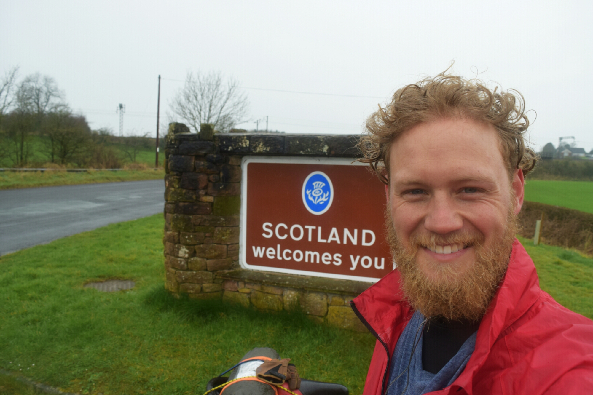 Crossing the border into Scotland was a big moment as you can see by my face I was pretty stoked and soaked actually. The UK has pitiful rain that is more like a wet haze that hangs around for a day or two.